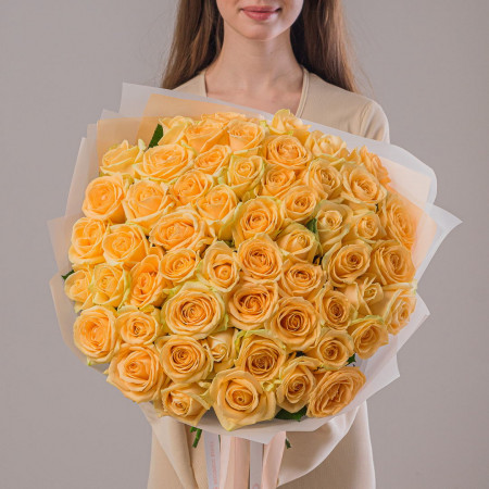 Роза 40 см - 51 шт., Современная упаковка - 1 шт., Лента атласная - 1 шт.Недорогие цветы