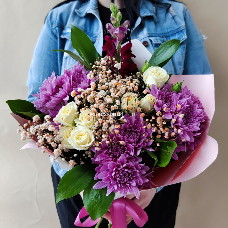 Мастерство флориста проявляется, в том числе в умении комбинировать оттенки и создавать настроение. Посмотрите, как красиво и гармонично сочетаются кремовый, светло-розовый и фиолетовый